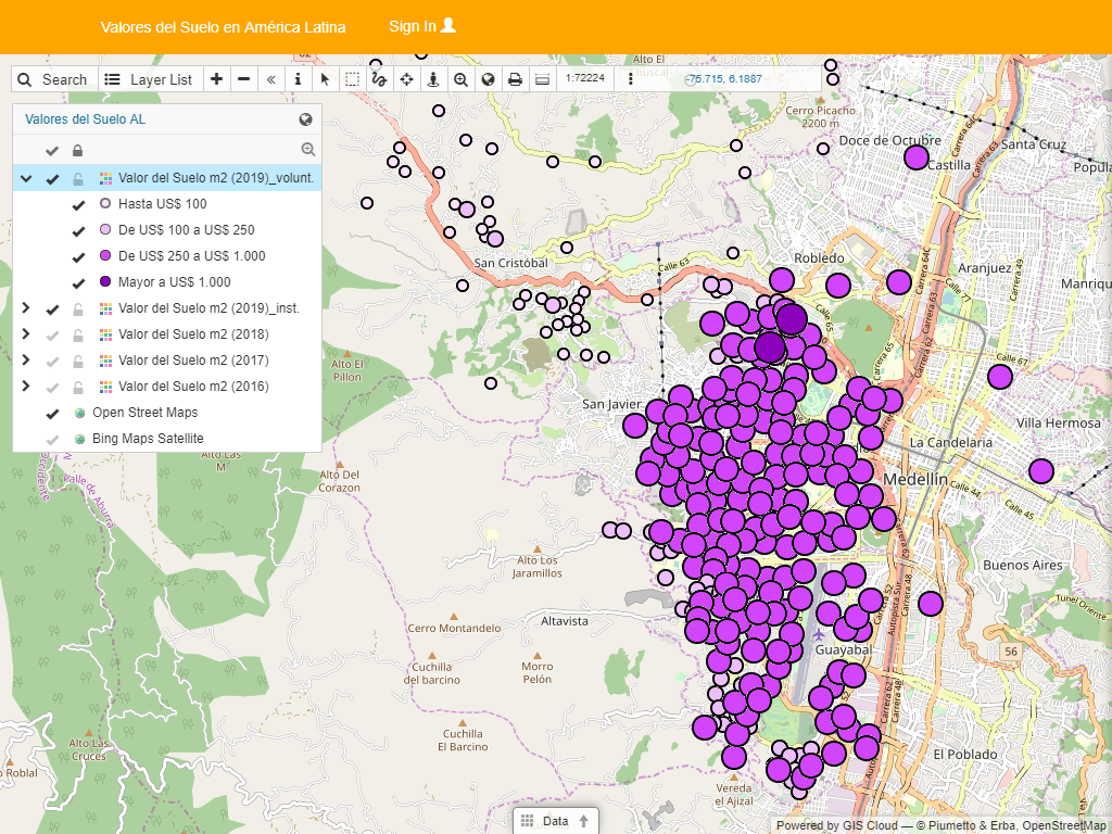 El Observatorio Inmobiliario de Medellín (OIME), Colombia, dependiente de la Subsecretaría de Catastro de dicha ciudad, acabo de sumarse a la iniciativa de Valores del Suelo en América Latina, aportando casi 900 datos de 2019. Agradecemos la gestión y compromiso de Juan Pablo Barrero Velez (Coordinador) y Juliette Eliana Loaiza Alvarez (Revisora), ambos del OIME Medellín.