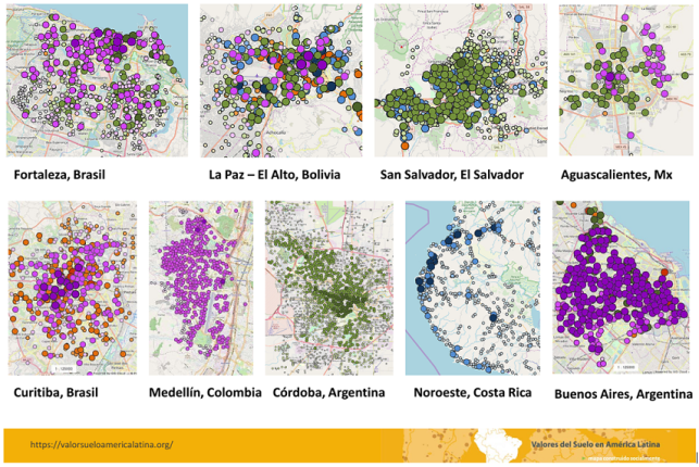 Medellín, Buenos Aires, Curitiba, Aguascalientes, La Paz/El Alto, Córdoba, Fortaleza, Costa Rica. Actualmente, más de 30.000 datos de valor de suelo urbano de 16 países recogidos desde 2016, están disponibles para su descarga!