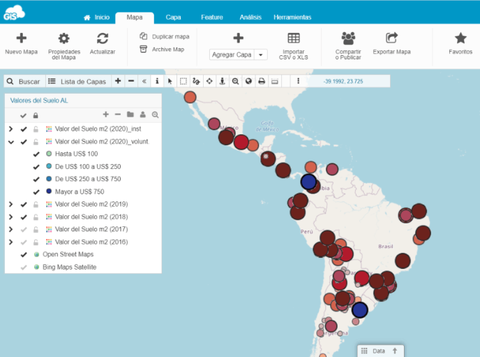 Esta iniciativa académica y abierta sistematiza valores de suelo de las ciudades de la región en forma libre y colaborativa (crowdsourcing), que luego son puestos a disposición de todos. Más de 45.000 datos georreferenciados de 900 ciudades, generados en las ediciones 2016, 2017, 2018 y 2019, nos ayudan a conocer más y mejor los mercados de suelo urbano en América Latina y el Caribe. Visita el mapa!