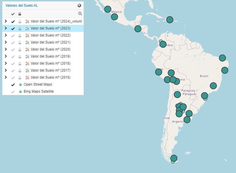En esta sección se puede acceder a datos de valores de suelo urbano en la región de 2016, 2017, 2018, 2019, 2020, 2021, 2022, 2023 y 2024. La información es libre tanto para consultas como para descargas, citando la fuente correspondiente.