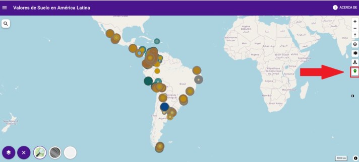 Los campos “país” y “ciudad” se completan automáticamente una vez colocado el pin, ya que el visor reconoce la ubicación geográfica seleccionada.