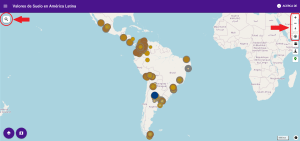 Para encontrar una localización puedes usar las herramientas de navegación que ofrece la plataforma o bien la rueda del mouse (girándola cambia la escala y manteniéndola presionada se amarra y puede navegar sobre el mismo); también puedes buscar ciudades o domicilios mediante la herramienta de localización (Buscar o Search) que se encuentra a la izquierda de la barra de herramientas (funciona con el motor de búsqueda de Google). Asimismo, en la parte derecha encontrarás los controles de zoom y otras opciones de desplazamiento para ajustar la vista del mapa.